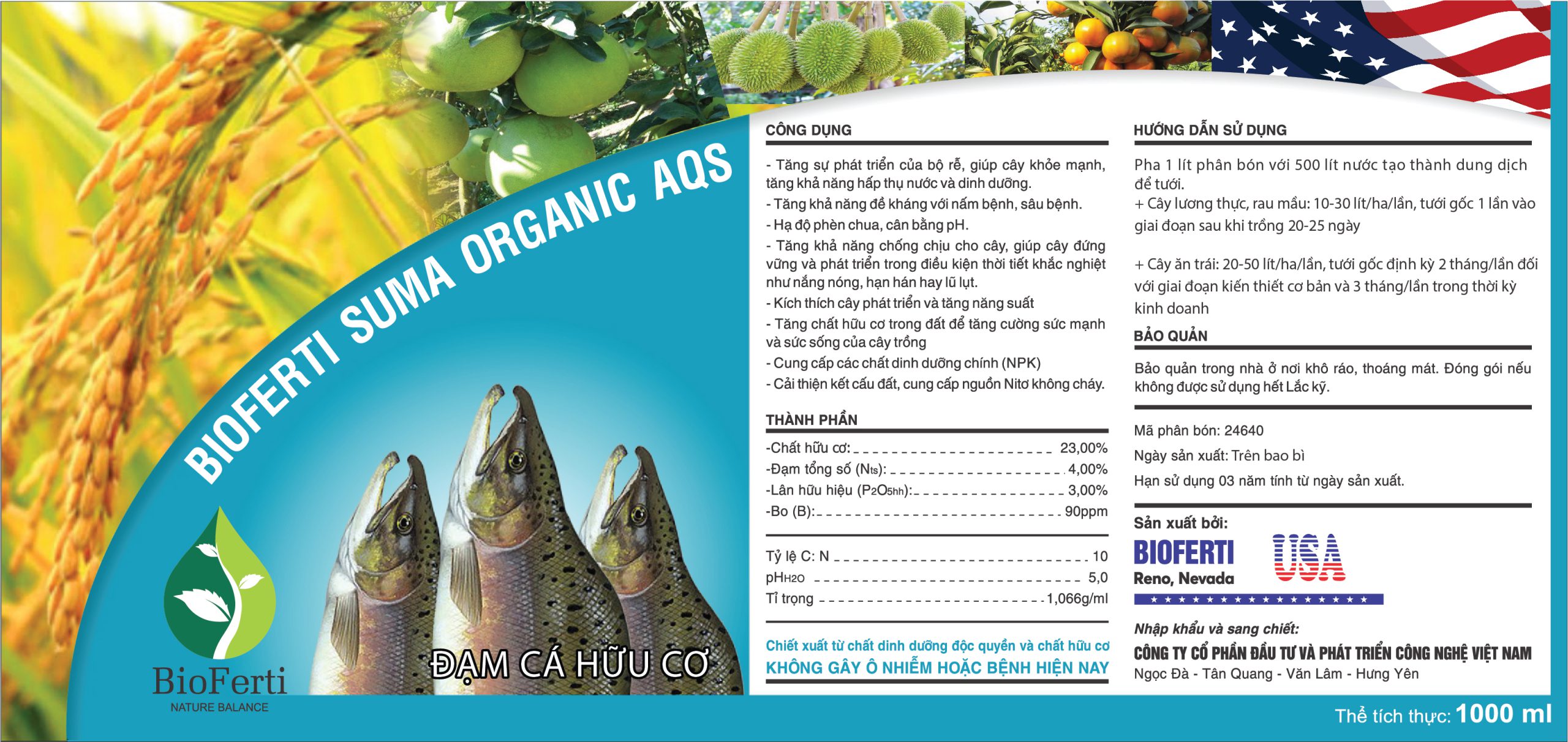 Tên sản phẩm: Bioferti Suma Organic AQS – Đạm cá hữu cơ USA