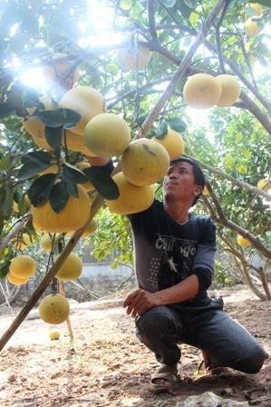 Anh Nguyễn Văn Chiến thí điểm phân hữu cơ vi sinh Sumagrow® tại vườn bưởi của gia đình ở Khoái Châu, Hưng Yên (Ảnh: HNV)